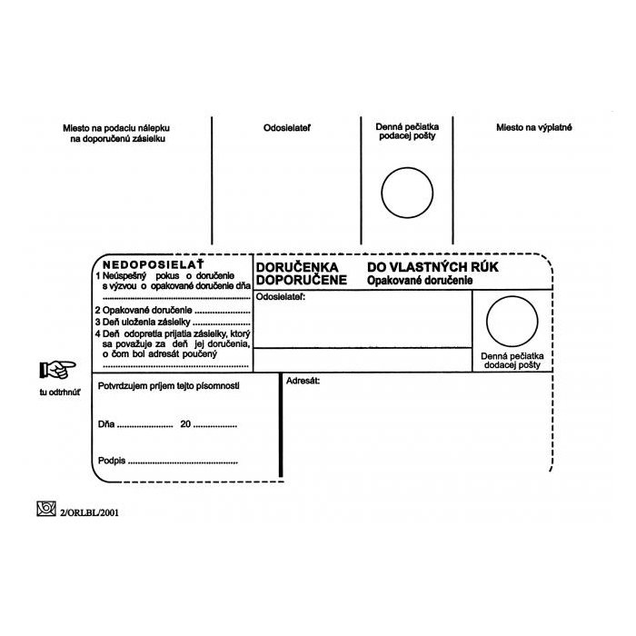 Poštové obálky B6 doručenka do VR OD, Nedoposielať, olizové 100 ks