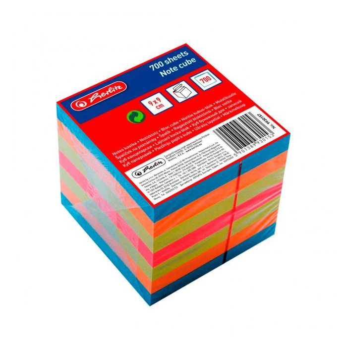 Poznámkový bloček kocka lepená Herlitz 90x90x90mm farebná