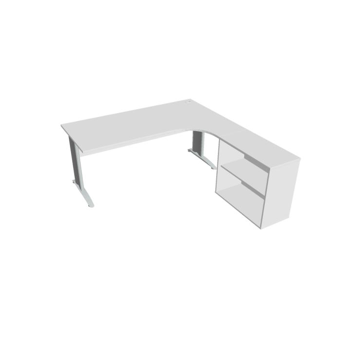 Pracovný stôl Cross, ergo, ľavý, 180x75,5x200 cm, biela/kov