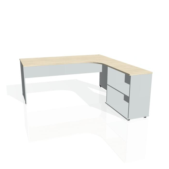 Pracovný stôl Gate, ergo, ľavý, 180x75,5x200 cm, agát/sivá