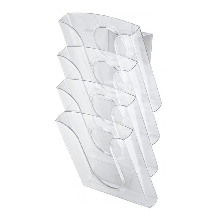 Sada štyroch prezentačných odkladačov rozmeru (v × š × h) 28 × 26 × 16 cm s možnosťou upevnenia na stenu alebo na stôl v závislosti od postavenia podložky. Súčasťou balenia je montážna sada pre upevnenie na stenu. Rozmery (š x v x h): 280 x 260 x 44 mm Farba: priehľadná číra