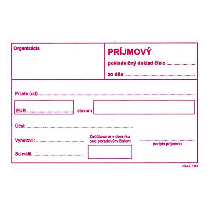 Príjmový pokladničný doklad bez DPH, formát A6, blok 100 listov.
