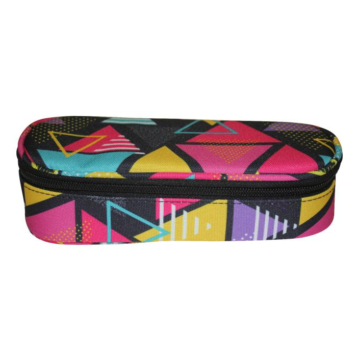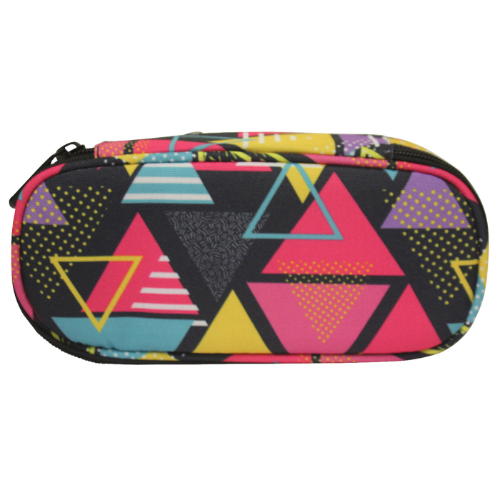Oválny peračník na zips, 1 vnútorná chlopňa s pútkami na pero, bez náplne, materiál polyester. Rozmery: Š x V x H: 21 x 5,5 x 10,5 cm. Motív Trojuholník.