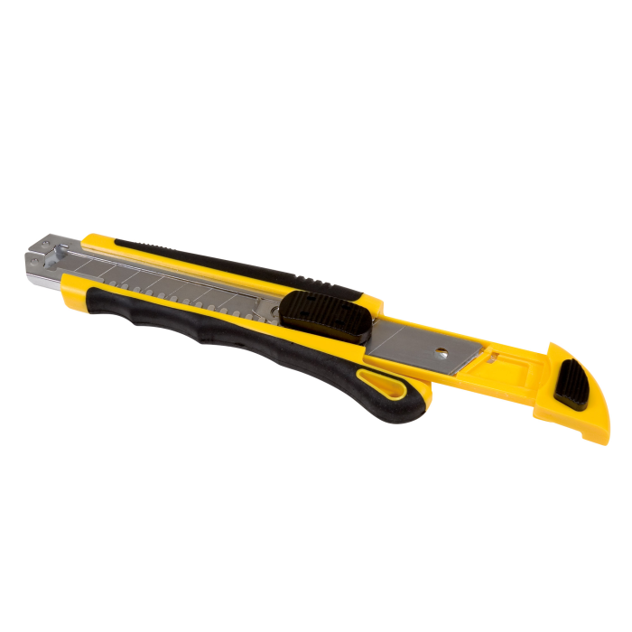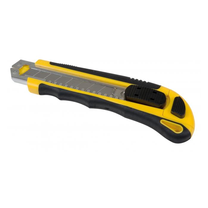Profesionálny rezač s puzdrom z ušľachtilej ocele, gumenou zónou pre dokonalé uchytenie a otvorom na zavesenie. Po vytiahnutí opotrebovaného noža sa zasunutím bežca nainštaluje z integrovaného zásobníka automaticky nôž nový. Šírka čepele: 18 mm. Úprava: plastová