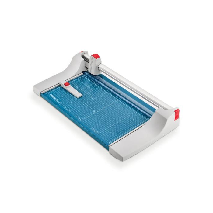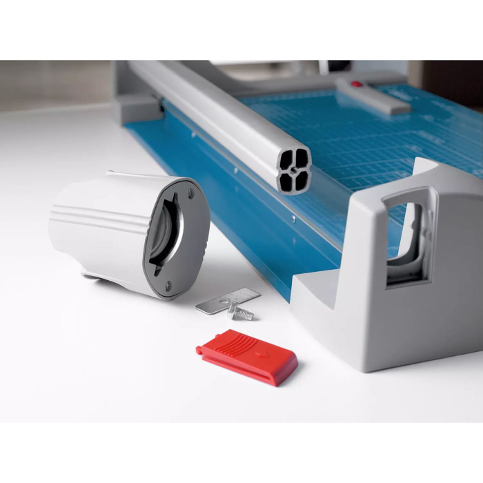Profesionálna rezačka s kovovou základňou a presným rezom na grafické účely (filmy, fólie, papier). Kvalita na dosiahnutie najvyššej presnosti - automatický prítlak pohybom rezacej hlavy, nastaviteľný zadný doraz s použitím na oba boky, množstvo zakreslených orientačných DIN formátov. Kruhový nôž umiestnený v plastovom ochrannom kryte sa automaticky brúsi pri rezaní o protinôž (oba nože z tvrdenej ocele). Mierka v cm/inch. Možnosť montáže na stenu.