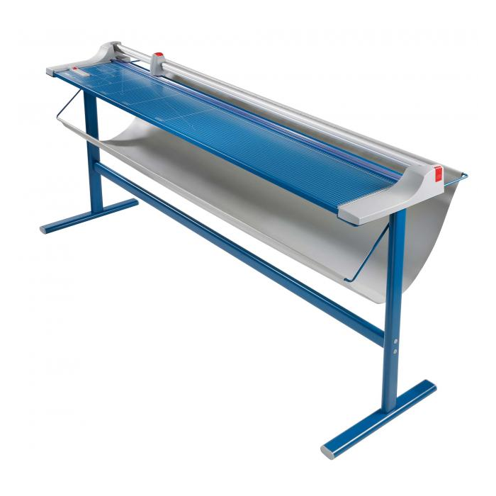 Profesionálna rezačka s kovovou základňou a presným rezom na grafické účely (filmy, fólie, papier). Kvalita na dosiahnutie najvyššej presnosti - automatický prítlak pohybom rezacej hlavy, nastaviteľný zadný doraz s použitím na oba boky, množstvo zakreslených orientačných DIN formátov. Kruhový nôž umiestnený v plastovom ochrannom kryte sa automaticky brúsi pri rezaní o protinôž (oba nože sú z tvrdenej ocele). Automatické upnutie na reznej linke pre rýchle upevnenie rezaného materiálu. Dve mierky s mm stupnicou pre presný 90° rez. Nastaviteľná zarážka pre rýchle nájdenie správneho formátu - možno použiť na oboch mierkach. Jednoduchá výmena reznej hlavy, aby ste sa mohli čo najrýchlejšie vrátiť k práci. Mierka v cm/ inch. Rezačka je dodávaná s kovovým stojanom a praktickým zachytávačom odpadu vo výške 87,5 cm. Veľkosť stola 2 030 × 384 mm.