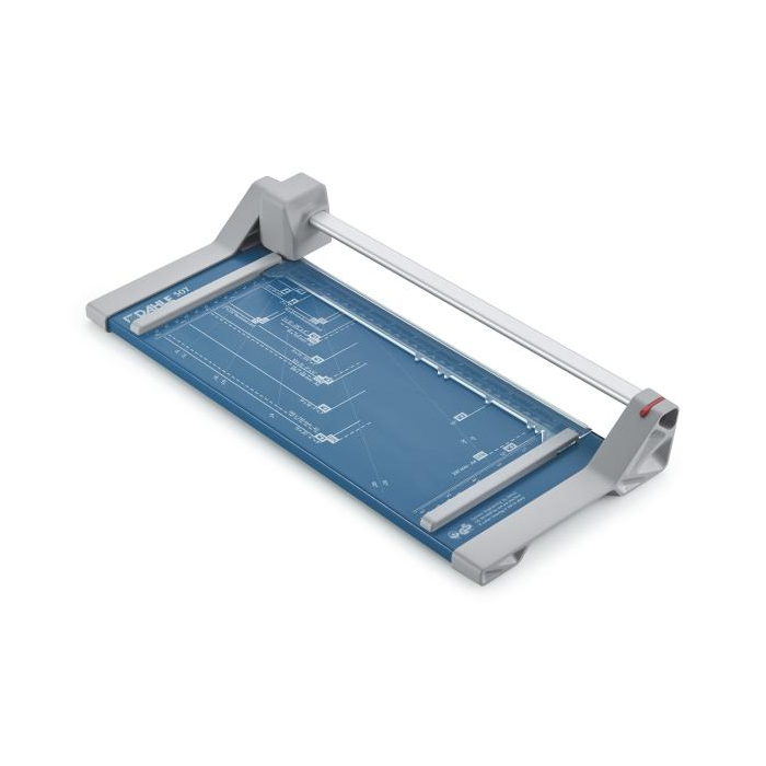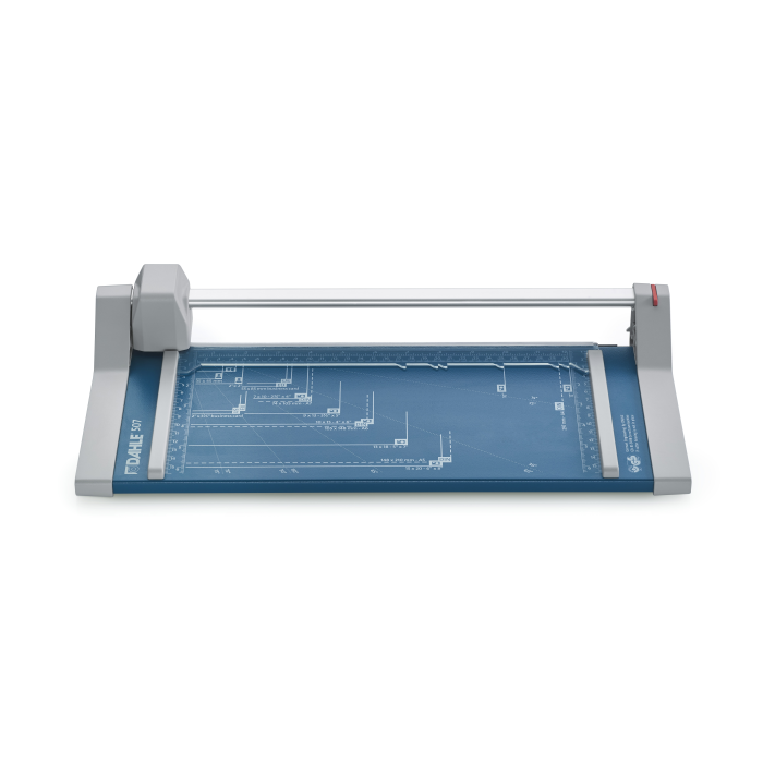 Rezačka s kruhovým nožom a kovovou základňou. Rotačný nôž v plastovom kryte, automatický prítlak, mierky v cm a DIN formátoch. Vhodná na rezanie papiera, etikiet, fotiek a filmov.