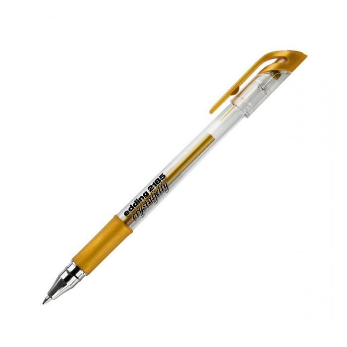 Jednorazový roller edding 2185 crystaljelly v metalizovaných farbách gélu, ktoré vyniknú najmä na tmavom papieri vďaka vynikajúcej krycej schopnosti. Šírka stopy 0,7 mm. Väčšie balenie 10 ks. Farba: zlatá.