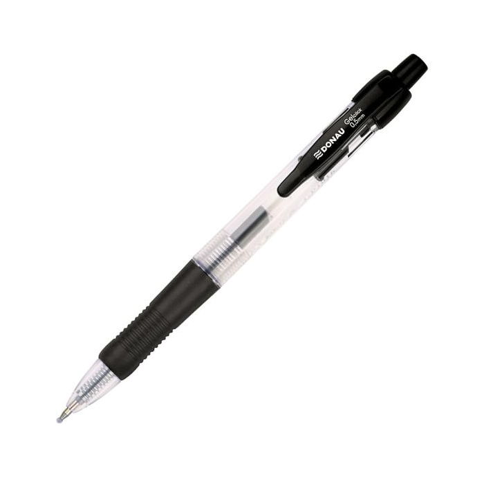 Klikací roller s plastovým klipom a gumeným úchytom vo farbe tuhy. Plnený netoxickým pigmentovým vode odolným atramentom. Telo z plastu, guľôčka 0,5 mm, šírka stopy 0,25 mm, dĺžka stopy 400 m. Väčšie balenie 12 ks. Náhradná náplň obj. kód DO734601.
