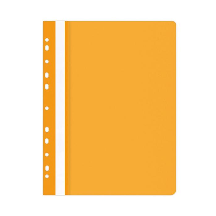 Rýchloviazač PP formátu A4 s priehľadnou prednou stranou a eurodierovaním. Farba matná oranžová.