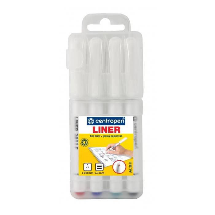 Jednorazový liner s jemným plastovým hrotom na najširšie využitie. Šírka stopy 0,3 mm, dĺžka stopy 1500 m. Dodávaný v sade 4 ks.