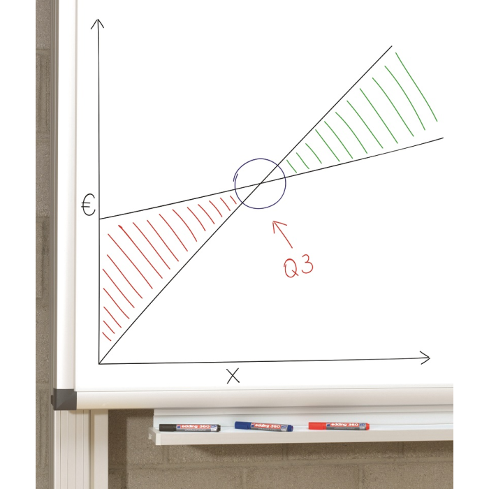 Popisovač vhodný na biele tabule, stierateľný za sucha. Plnený pigmentovým atramentom slabého zápachu bez prísady butylacetátu s vlastnosťou „Cap off“, zabraňujúcou vysychaniu atramentu pri otvorenom hrote aj niekoľko dní. Dopĺňateľný atramentom edding BTK 25. Plastové telo, vymeniteľný hrot. Hrot okrúhly, šírka stopy 1,5---3 mm. Sada 4 ks v mixe farieb.