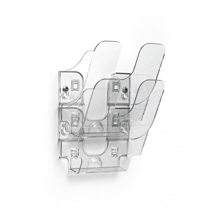 Nástenný stojan na prospekty FLEXIPLUS s 2 priehradkami na informácie vo formáte A5, s plniacim objemom 23 mm. Rozmery: 180 x 250 x 105 mm (Š x V x H). Ideálny ako držiak letákov a stojan na noviny v recepčných a čakacích priestoroch, na veľtrhoch alebo v kancelárii. Vyrobené v Nemecku