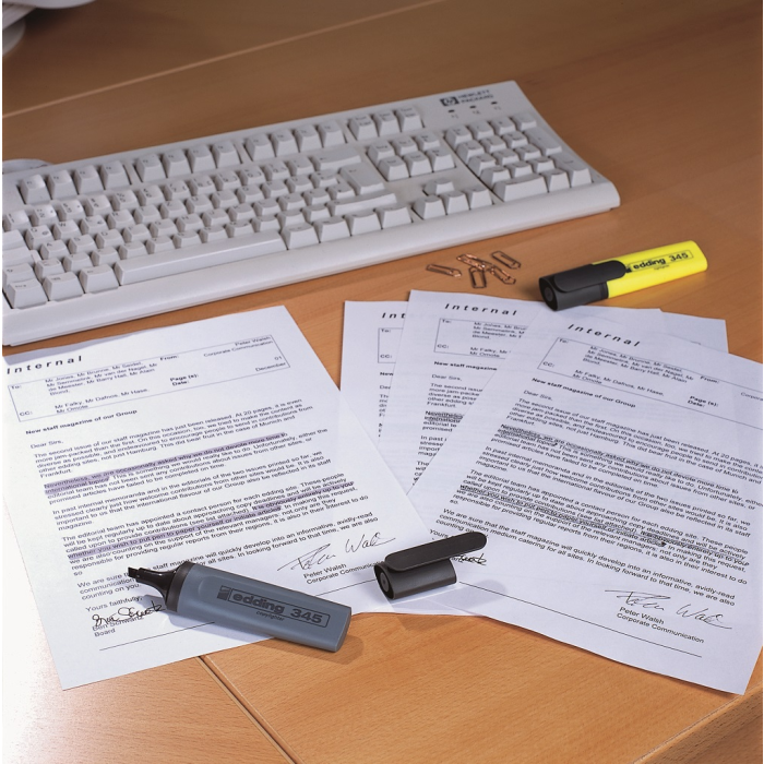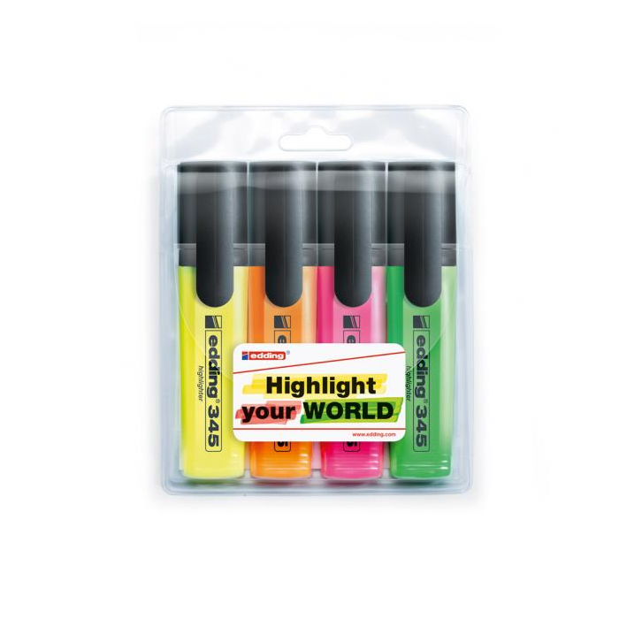 Popisovač so zrezaným hrotom so šírkou stopy 2 - 5 mm. Pre zvýraznenie textových pasáží, výstupov z atramentových tlačiarní, poznámok a pod. Vodovzdorný pigmentový atrament so silne svietivými a intenzívnymi farbami. Vhodný pre InkJet - pri zvýrazňovaní textov tlačených na atramentových tlačiarňach sa atrament nerozpíja. Dopĺňateľný atramentom HTK 25. Sada 4 farieb. Farba: 4 farby Šírka stopy: 2-5 mm