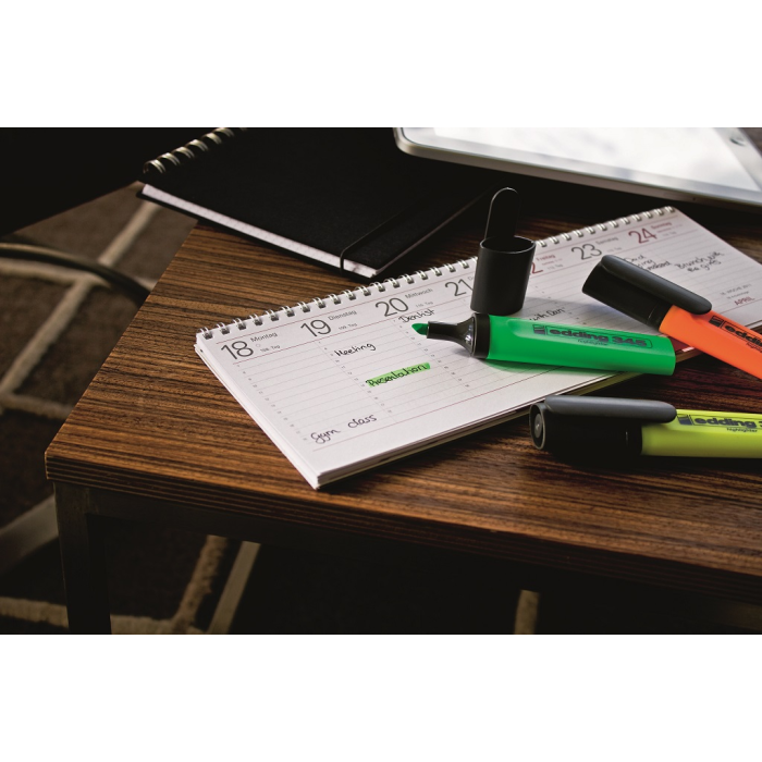 Popisovač so zrezaným hrotom so šírkou stopy 2 - 5 mm. Pre zvýraznenie textových pasáží, výstupov z atramentových tlačiarní, poznámok a pod. Vodovzdorný pigmentový atrament so silne svietivými a intenzívnymi farbami. Vhodný pre InkJet - pri zvýrazňovaní textov tlačených na atramentových tlačiarňach sa atrament nerozpíja. Dopĺňateľný atramentom HTK 25. Sada 6 farieb. Farba: 6 farieb Šírka stopy: 2-5 mm