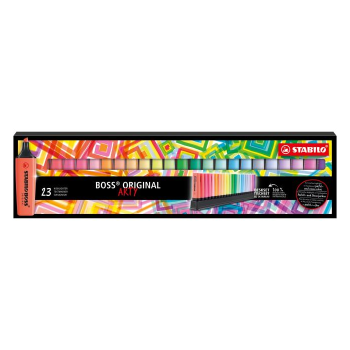 Sada zvýrazňovačov STABILO BOSS ORIGINAL - ARTY - 23 ks (9 neonových a 14 pastelových farieb)