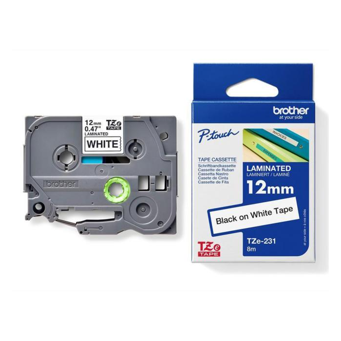 Laminovaná páska TZe vhodná pre všetky tlačiarne štítkov Brother. Odoláva teplotám od -50 do 300 °C, je odolná voči slnečnému žiareniu, vlhkosti, mechanickému poškriabaniu, prachu a iným nečistotám a olejovým kvapalinám. Dĺžka pásky 8 m.