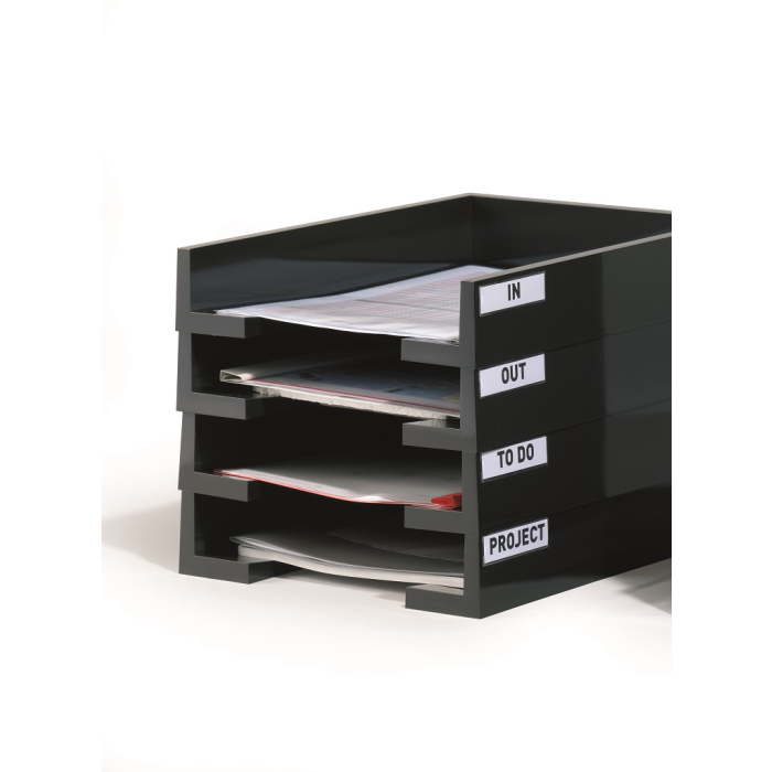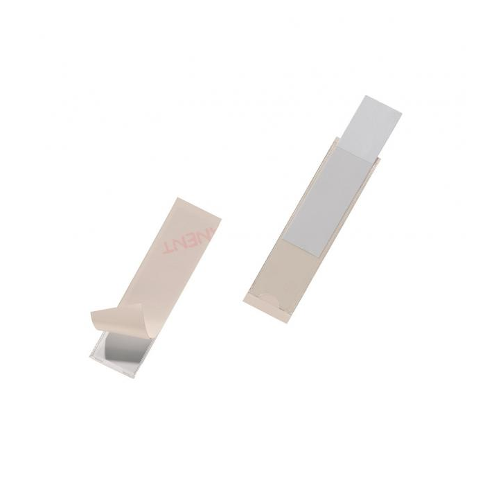 Vrecká vhodné na popis zakladačov, krúžkových blokov, priehradok a pod. Výrez na vrecku uľahčuje manipuláciu s vloženým popisným štítkom. Obsahom balení sú čisté zasúvacie štítky.