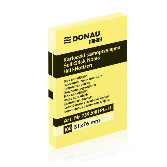 Samolepiaci bloček Donau Eco žltý 51x76mm