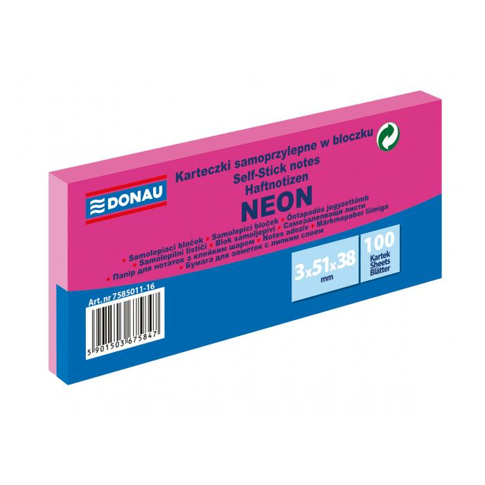 Samolepiaci bloček Donau neónový 38x51 ružový/3ks