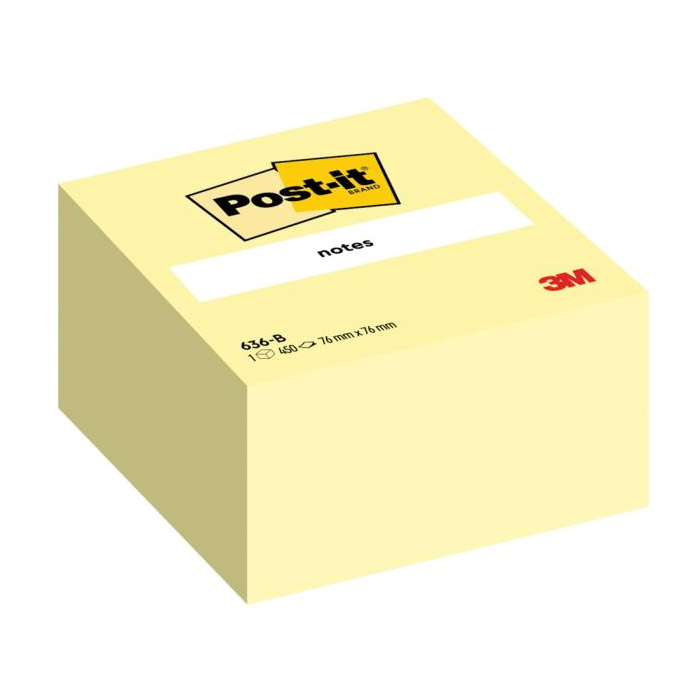 Post‑it® žltá kocka. 450 lístkov, ktoré držia na väčšine povrchov a nezanechavajú žiadne stopy po lepidle. Rozmery 76 x76 mm.