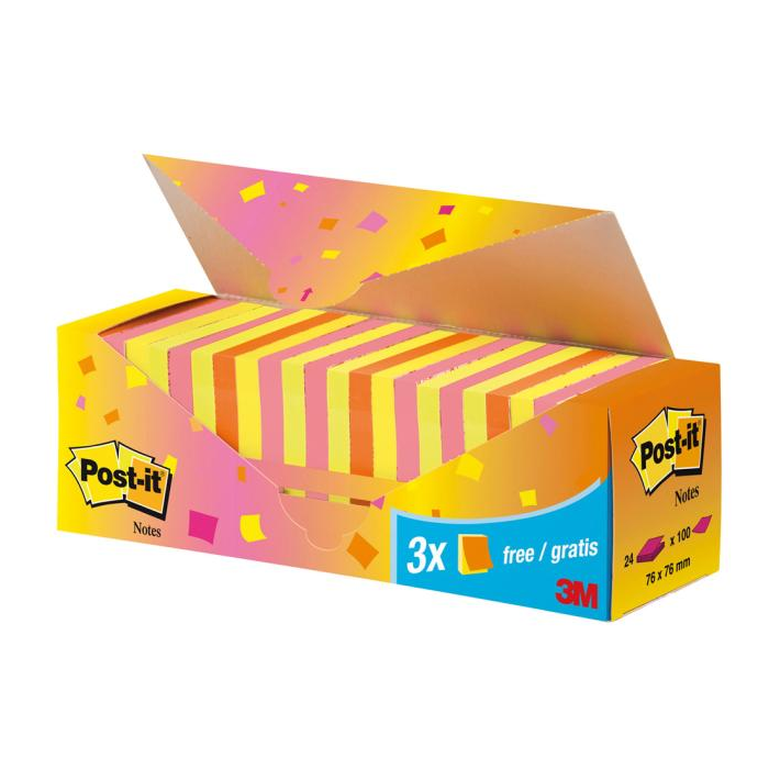 Výhodné balenie bločkov Post‑it® Super Sticky™ v mixe neónových farieb. Vhodné na rôzne povrchy. Vďaka použitému špeciálnemu lepidlu držia spoľahlivo a dlhodobo i na nerovných plochách. Po odtrhnutí nezanechávajú stopy po lepidle.