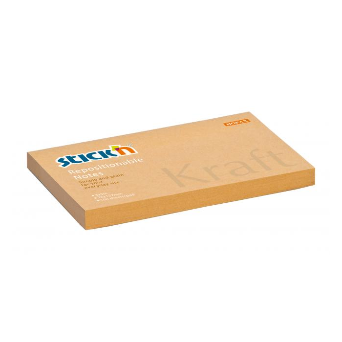 Samolepiaci bloček Stick’n Hopax Kraft, 76x127 mm, prírodná hnedá