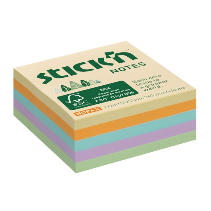 Samolepiaci bloček Stick’n Hopax mini, 51x51 mm, lúčny mix pastelových farieb, 240 lístkov