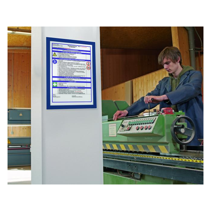 Samolepiaci informačný panel s prednou magnetickou časťou. Ideálny na vystavovanie plagátov, kľúčových informácií, špeciálnych oznamov alebo dôležitých čísel. Informácie sa ľahko vymieňajú a sú čitateľné z oboch strán, ak sa panel umiestni napr. na okno alebo priehľadné dvere. Vhodný na hladké a pevné povrchy. V prípade potreby je ľahko premiestniteľný bez potreby vŕtania. Formát A4, rámik modrý. Balenie 10 ks.