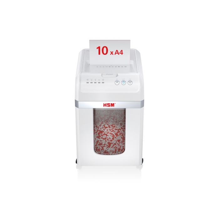 Plne automatická skartovačka dokumentov vám poskytuje bezproblémové zabezpečenie údajov. Stačí vložiť stoh papiera, zatvoriť vrch - a zariadenie sa postará o zvyšok. Skartovačka dokumentov s automatickým podávaním skartuje až 200 listov na častice, ktoré zodpovedajú úrovni zabezpečenia P-4 (4x12 mm), čím zaisťuje zabezpečenie údajov v súlade s GDPR.