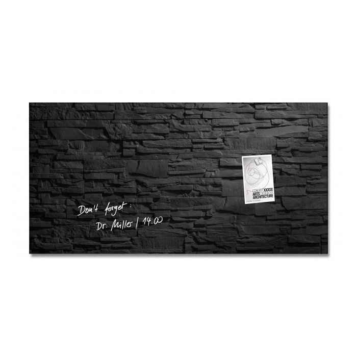 Magnetické tabule z tepelne tvrdeného bezpečnostného skla (EN 12150-1) hrúbky 15 mm s jednoduchou a bezpečnou montážou s certifi kátom TUV dodajú vašim kanceláriám, konferenčným miestnostiam, jedálňam i domácnostiam exkluzívny vzhľad. Sú popisovateľné kriedovými popisovačmi Sigel a za sucha zotierateľné utierkou z mikrovákna. Súčasťou balenia sú 3 super silné neodymové magnety a montážny materiál. Pri používaní príslušenstva Sigel je garantovaná 25-ročná záruka na magnetický sklenený povrch tabule. Rozmery 91 × 46 cm. Dizajn bridlica.