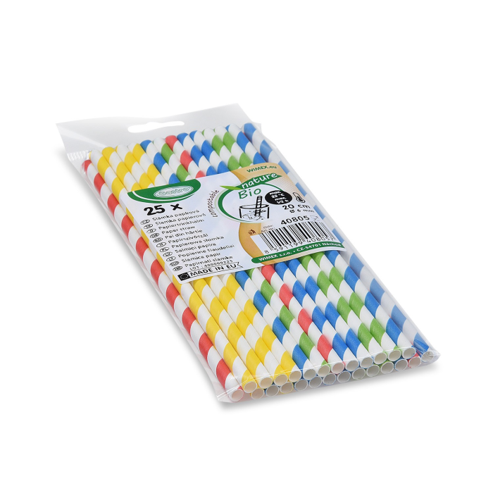 Slamky papierové špirály farebný mix 6 mm x 20 cm (25 ks)