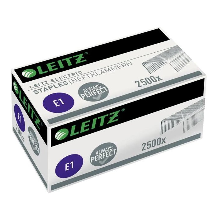 Vyrobené z extra pevnej ocele. Odporúčané pre elektrickú zošívačku Leitz New NeXXt WOW. K zošitiu až 10 listov (80 g/m2). Krabička obsahuje: 2500 spiniek Prémiová kvalita, odporúčané do elektrickej zošívačky Leitz 5532, 5566. Dĺžka nožičky spinky 5 mm.