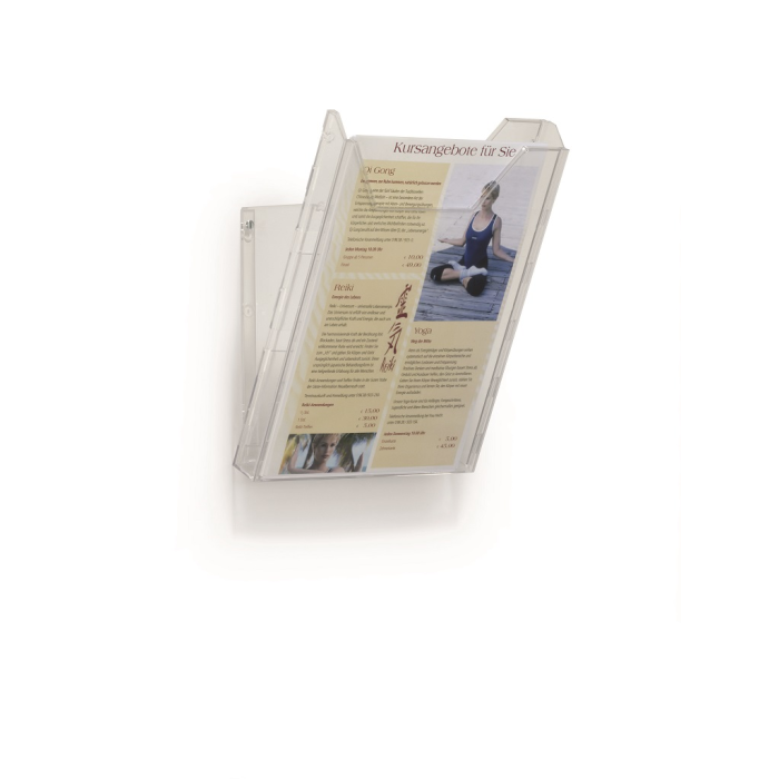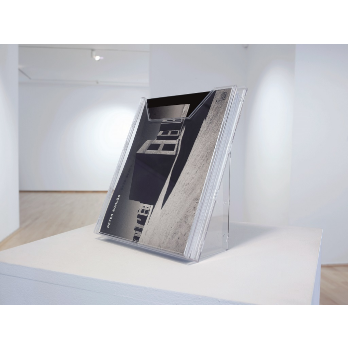 Kombinovaný stojan s jedným odkladačom na prospekty a časopisy formátu A4 s jedným odkladačom a závesným dielom na stenu, resp. stôl. Tento základný modul je možné rozšíriť pridaním ďalších odkladačov DU8579 19. Materiál priehľadný plast.Vnútorné rozmery 240 × 311 mm. Rozmery š x v x h: 240x311 mm
