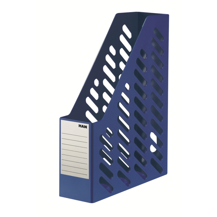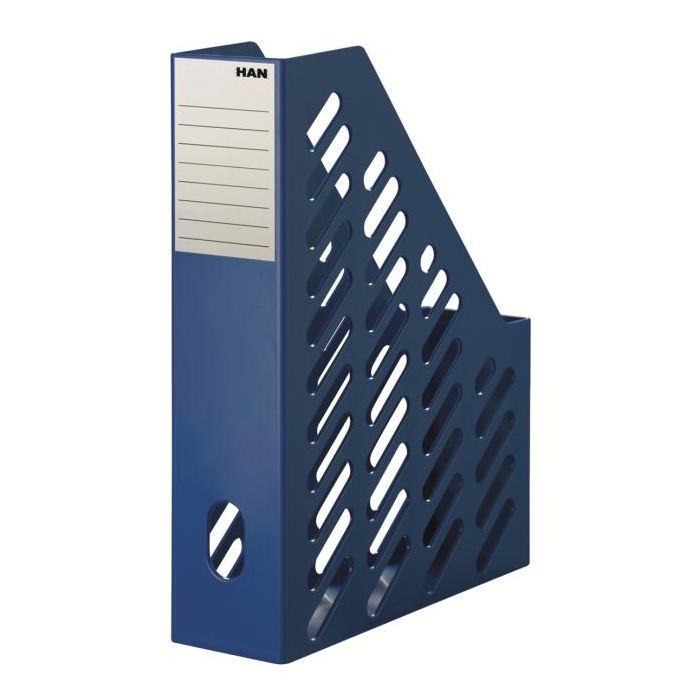 Viacúčelové plastové stojany vhodné na ukladanie časopisov, záznamov, katalógov a pod. v klasickom dizajne a nepriehľadnej úprave. Balenie 2 ks. Možnosť i zvýhodneného 10 ks balenia obj.kód HA160114. Farba: modrá
