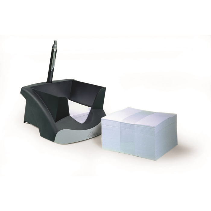 Štýlový stojan na bloky v dizajne produktovej rady DURABLE VEGAS dodávaný s 500 papierikmi bielej farby rozmerov 90×90 mm. Ľahký prístup k papierikom, priestor na pero, protišmyková úprava. Rozmery (š×v×d) 116×70×153 mm.