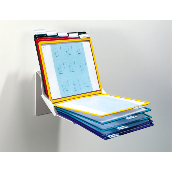 Extrémne pevný stojan na stôl v tvare L. Vyrobený z kovovej platne s plastovým poťahom odolným voči oderu. Ideálny na použitie v dielňach, skladoch, priemysle a kuchyniach. Dodávaný s 10 polypropylénovými panelmi SHERPA v mixe farieb (čierna, červená, žltá, zelená a tmavomodrá).