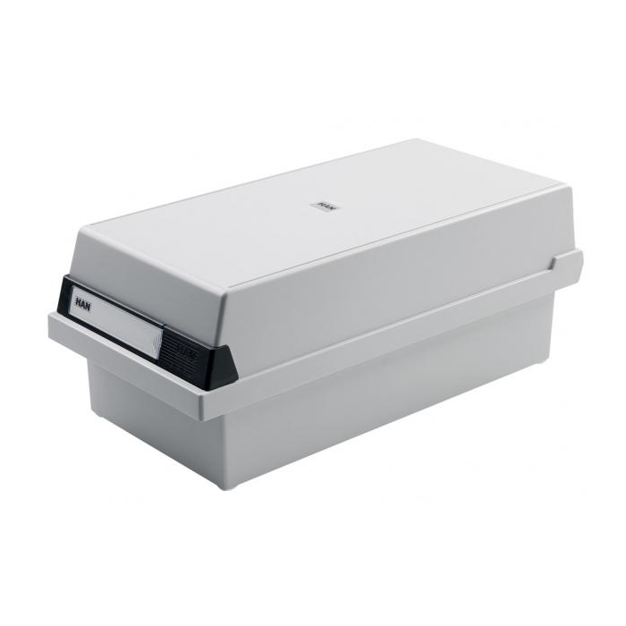 Kartotéka z antistatického nárazuvzdorného plastu pre 1000 kartičiek ukladaných horizontálne. Vybavená dvoma plastovými oddeľovačmi, (inak prázdna) a ochrannými plstenými podložkami. Pri používaní možno odňať kryt a podložiť ho pod kartotéku. Dĺžka 36 cm. Formát karty: A5 Vonkajší rozmer: 234x360x180 mm Farba: sivá