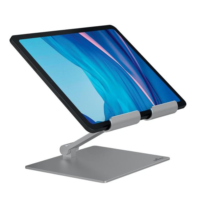 Univerzálny, stojan pre smartfóny a tablety od 13” do 15”. Priestorovo úsporný, skladací a ľahko prenosný. Maximálna nosnosť: 1 kg. Sklopný pre úsporu miesta. Vyrobený z vysoko kvalitného hliníka.