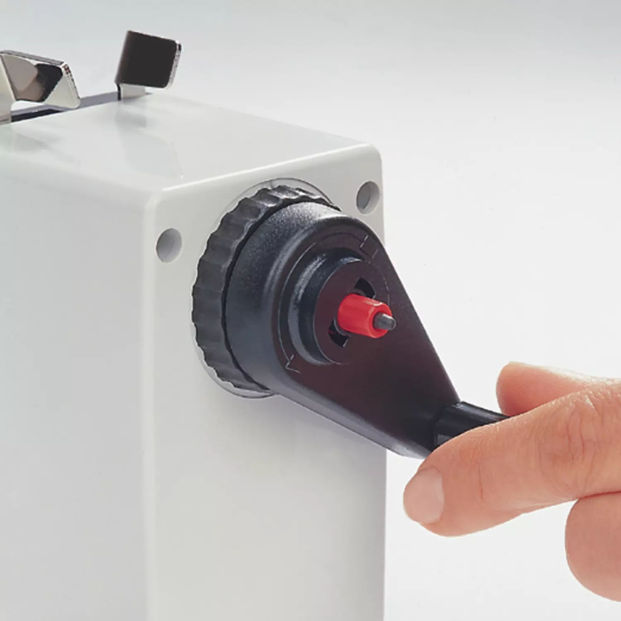 Značkové mechanické strúhadlo s vysokokvalitnými oceľovými nožmi a nastaviteľným tvarom hrotu, z plastu, na tuhy a ceruzky priemeru do 12 mm v atraktívnom dizajne s automatickým prichytením ceruzky pri strúhaní a jej automatickým uvoľnením po zastrúhaní. Kovová objímka prítlaku zabezpečuje dlhú životnosť. Veľká nádoba na odpad umožňuje menej časté vyprázdňovanie. Vysoko kvalitná oceľová strúhacia hlava pre profesionálne výsledky. Robustná stolová svorka pre bezpečné upevnenie na stole. Automatické vypnutie ostrenia pre perfektný hrot.