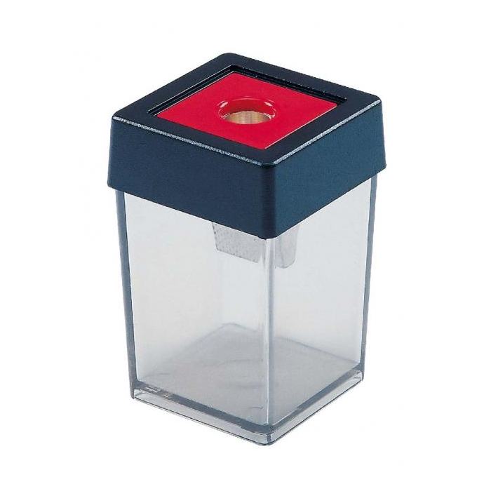 Strúhadlo s boxom na ceruzky priemeru do 8 mm. Telo a vrchnák z plastu, strúhadlo z kovu.