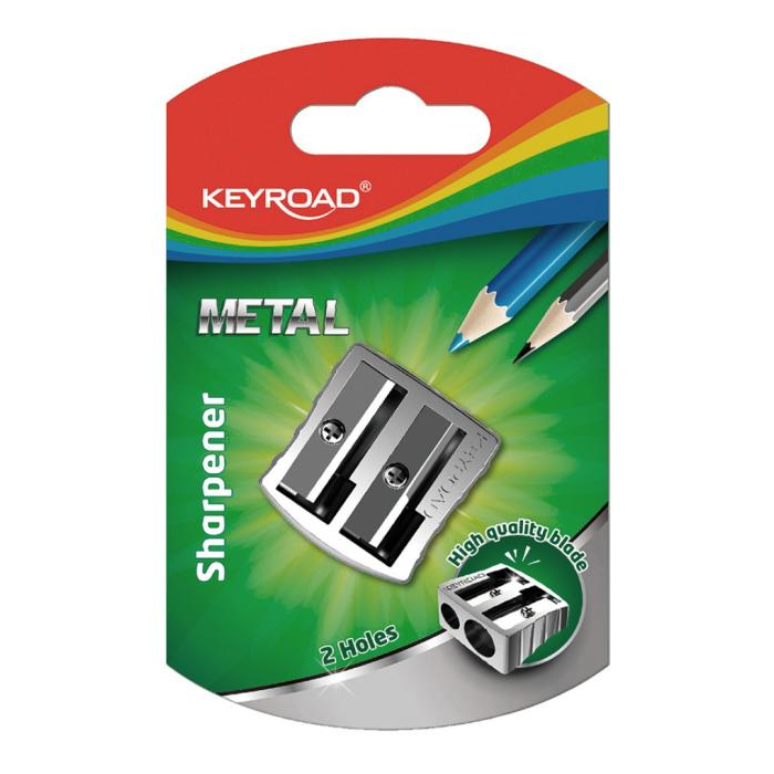 Kovové strúhadlo KEYROAD, vybavené dvoma čepeľami, určené na strúhanie ceruziek a pasteliek s maximálnym priemerom 8 alebo 11 mm. Balenie: blister. Farba: strieborná.