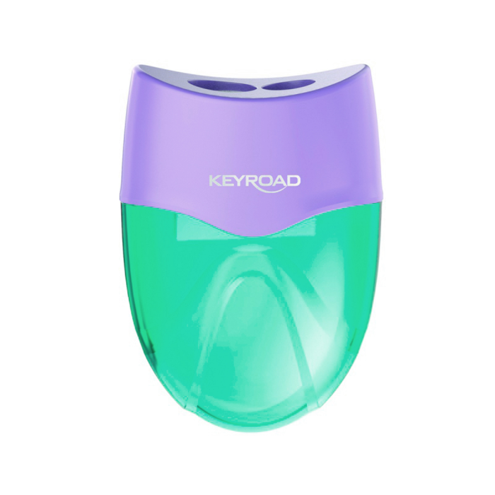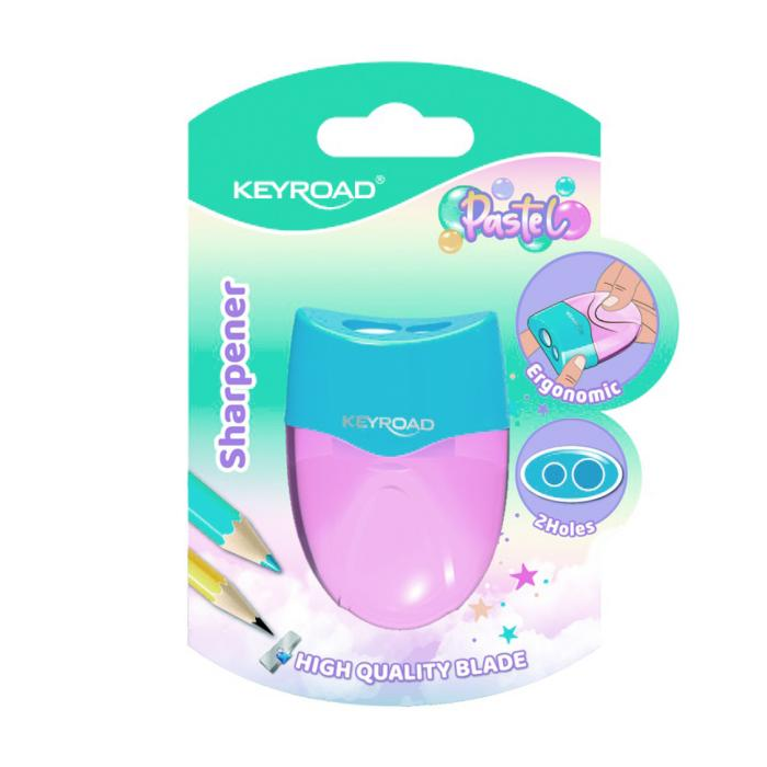 Plastové strúhadlo KEYROAD s nádobou, dvojité. Balenie: blister. Farba: mix pastelových farieb.