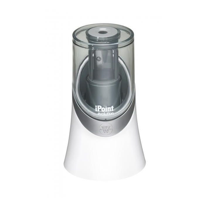Strúhadlo na batérie AA vhodné na ceruzky do priemeru 8 mm. Automatické strúhanie po zasunutí hrotu. Dodávané bez batérií. Rezná časť strúhadla iPoint évolution je pre vysokú ostrosť potiahnutá titánom. Farba biela.