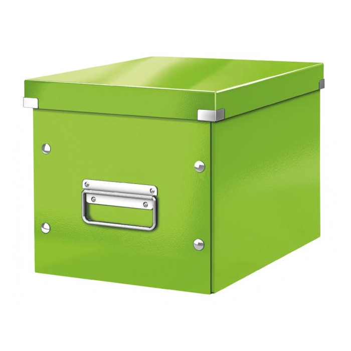 Skladacia archivačná krabica v tvare kocky je ideálna na ukladanie vysokých predmetov alebo vecí oblého tvaru. Veľkostne sa dokonale zmestí do štandardných policových systémov. Vyrobená zo silného kartónu. Laminovaný povrch a kovové prvky na rohoch poskytujú skvelú ochranu, odolné kovové úchyty slúžia na pohodlný prenos. Moderný design, ktorý vyzerá skvelo doma i v kancelárii. Rozmery (š × v × h) 260 × 240 × 260 mm. Farba metalická zelená.
