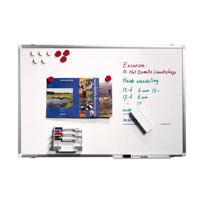 Tabuľa s keramickou úpravou povrchu odolná voči poškriabaniu a kyselinám. Magnetický povrch vhodný pre popisovanie za sucha stierateľnými popisovačmi. Hliníkový rám so špinavo bielymi rohovými spojkami z plastu. Dodávaná s montážnou sadou, 30 cm hliníkovou odkladacou lištou a popisovačom.