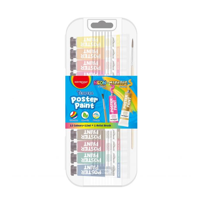 Temperové farby KEYROAD, 12x12ml, v balení so štetcom, mix farieb