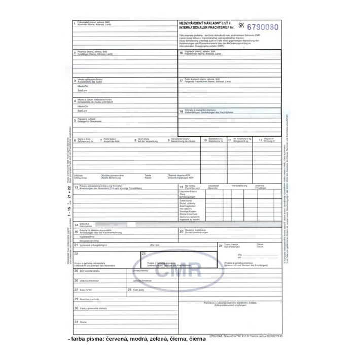 Tlačivo CMR 5-listov SK/DE