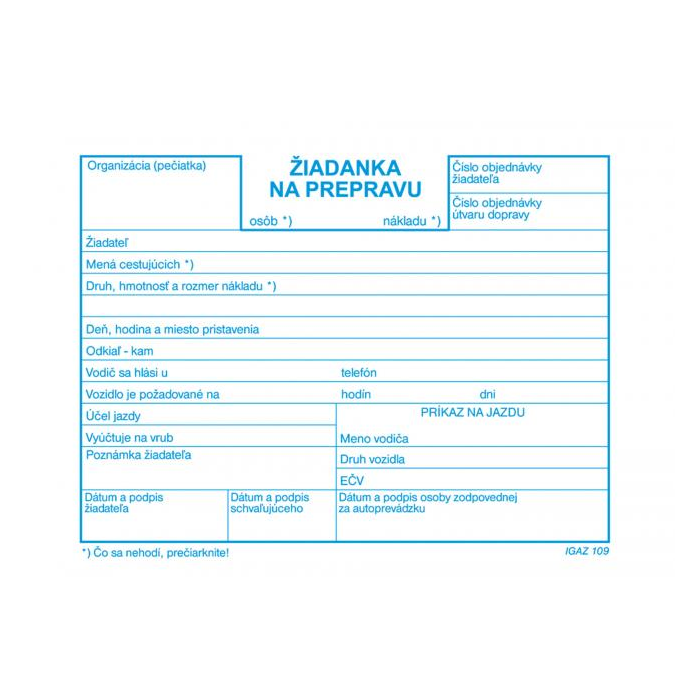 Tlačivo Žiadanka na prepravu, A6, 100 listov