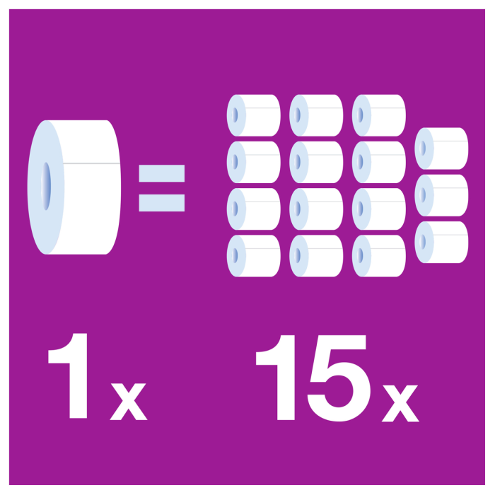 Tork Jumbo systém je časovo efektívny a znižuje náklady, ponúka oveľa väčšie množstvo toaletného papiera ako štandardný kotúč. Tork Jumbo toaletný papier v kotúči Advanced dvojvrstvový výborne vyvažuje náklady a množstvo je ideálny pre vysoko frekventované prostredia. V predaji po balení (6 roliek).